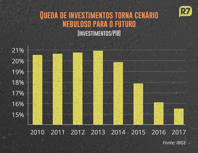 O momento, no entanto, é o pior de todos para reverter esse cenário no médio e longo prazo, porque a taxa de investimentos atingiu em 2017 o menor valor desde 1995, quando o IBGE iniciou a série histórica.